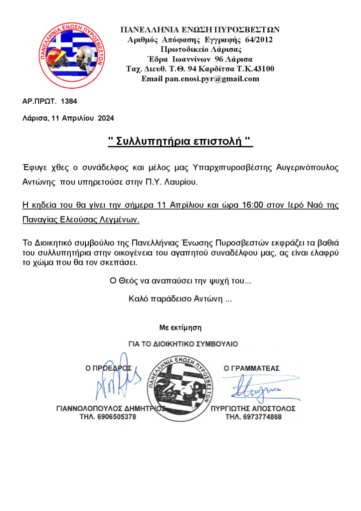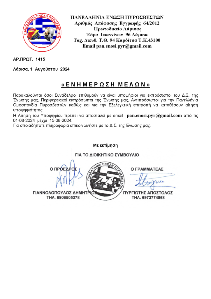 ΠΑΤΗΣΤΕ ΕΔΩ ΓΙΑ ΤΗΝ ΑΙΤΗΣΗ ΜΕΛΟΥΣ ΤΗΣ ΠΑΝΕΛΛΗΝΙΑΣ ΕΝΩΣΗ ΠΥΡΟΣΒΕΣΤΩΝ